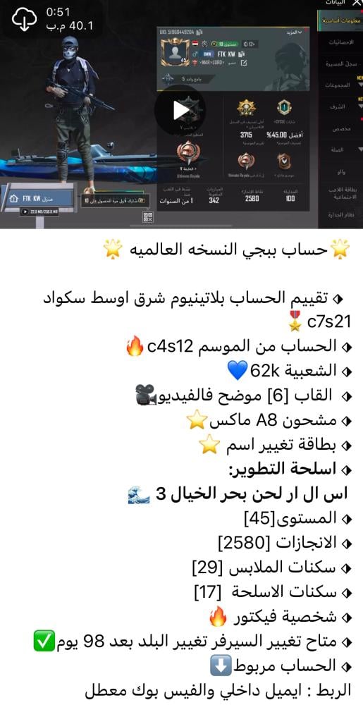 ❤️ اضغط هنا وانضم لقناتنا على تطبيق التلجرام ❤️ لمشاهدة الحسابات بالفيديو وكل ماهو جديد