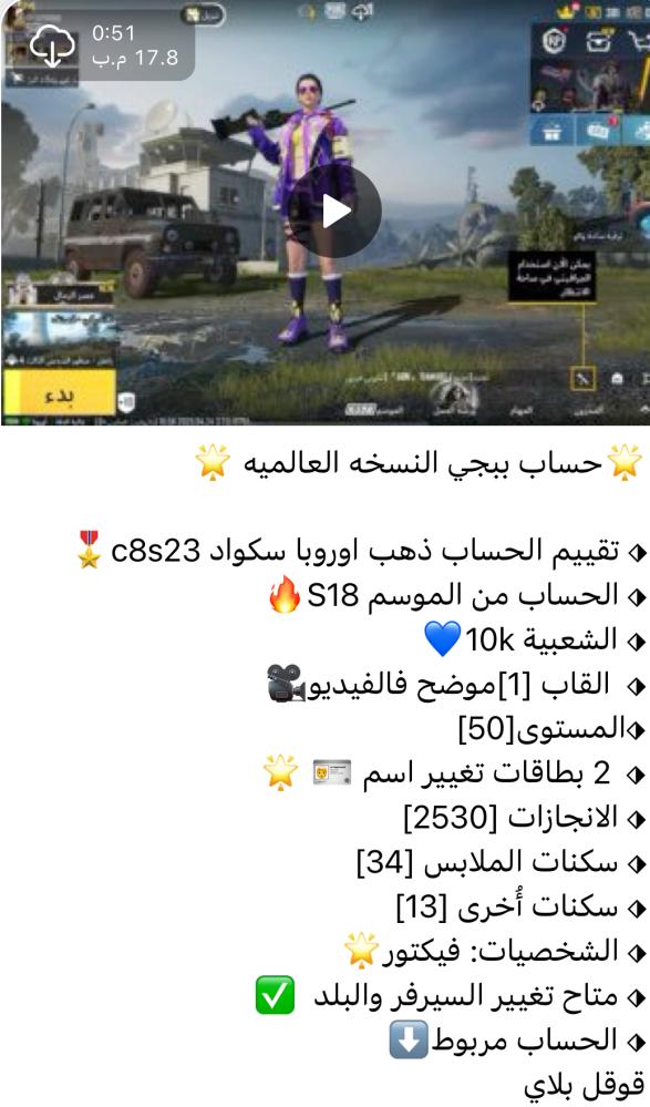 ❤️ اضغط هنا وانضم لقناتنا على تطبيق التلجرام ❤️ لمشاهدة الحسابات بالفيديو وكل ماهو جديد