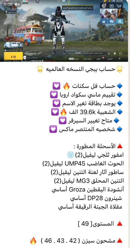 ❤️ اضغط هنا وانضم لقناتنا على تطبيق التلجرام ❤️ لمشاهدة الحسابات بالفيديو وكل ماهو جديد