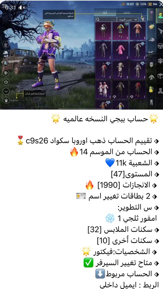 ❤️ اضغط هنا وانضم لقناتنا على تطبيق التلجرام ❤️ لمشاهدة الحسابات بالفيديو وكل ماهو جديد