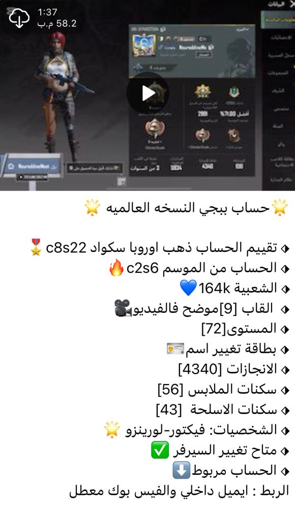 ❤️ اضغط هنا وانضم لقناتنا على تطبيق التلجرام ❤️ لمشاهدة الحسابات بالفيديو وكل ماهو جديد