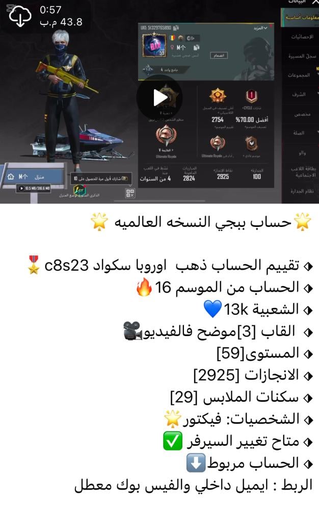 ❤️ اضغط هنا وانضم لقناتنا على تطبيق التلجرام ❤️ لمشاهدة الحسابات بالفيديو وكل ماهو جديد