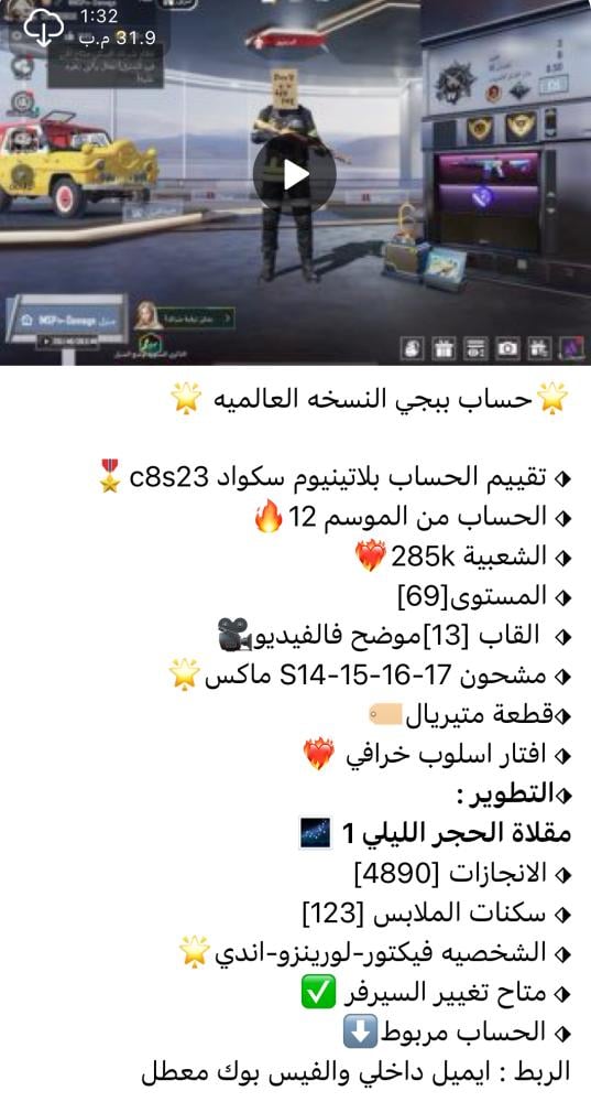 ❤️ اضغط هنا وانضم لقناتنا على تطبيق التلجرام ❤️ لمشاهدة الحسابات بالفيديو وكل ماهو جديد