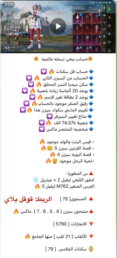 ❤️ اضغط هنا وانضم لقناتنا على تطبيق التلجرام ❤️ لمشاهدة الحسابات بالفيديو وكل ماهو جديد