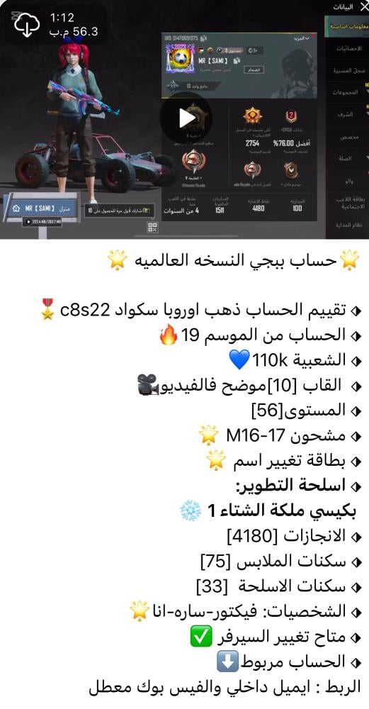 ❤️ اضغط هنا وانضم لقناتنا على تطبيق التلجرام ❤️ لمشاهدة الحسابات بالفيديو وكل ماهو جديد