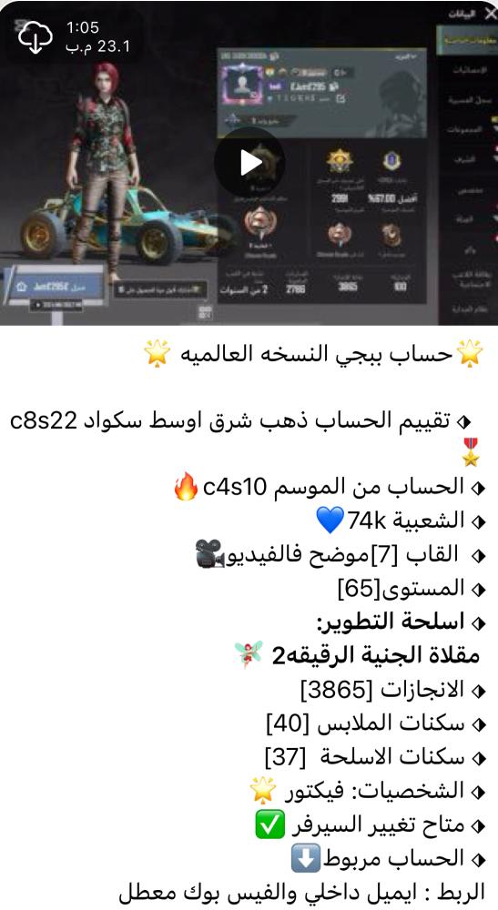 ❤️ اضغط هنا وانضم لقناتنا على تطبيق التلجرام ❤️ لمشاهدة الحسابات بالفيديو وكل ماهو جديد