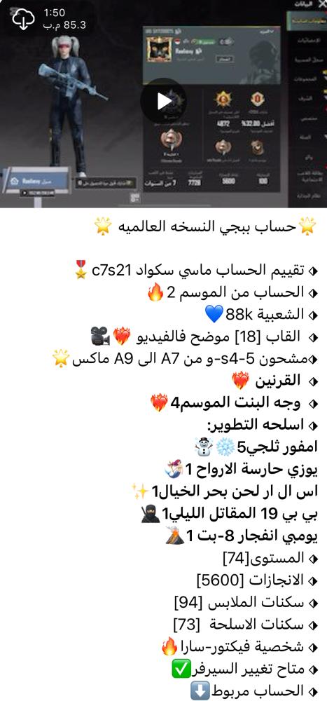 ❤️ اضغط هنا وانضم لقناتنا على تطبيق التلجرام ❤️ لمشاهدة الحسابات بالفيديو وكل ماهو جديد