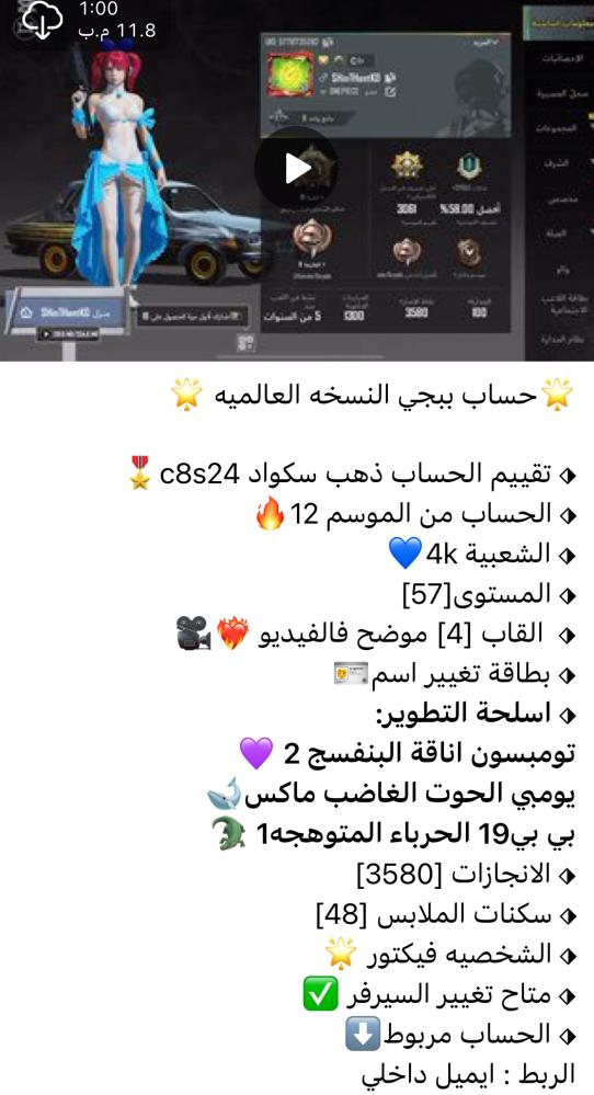 ❤️ اضغط هنا وانضم لقناتنا على تطبيق التلجرام ❤️ لمشاهدة الحسابات بالفيديو وكل ماهو جديد