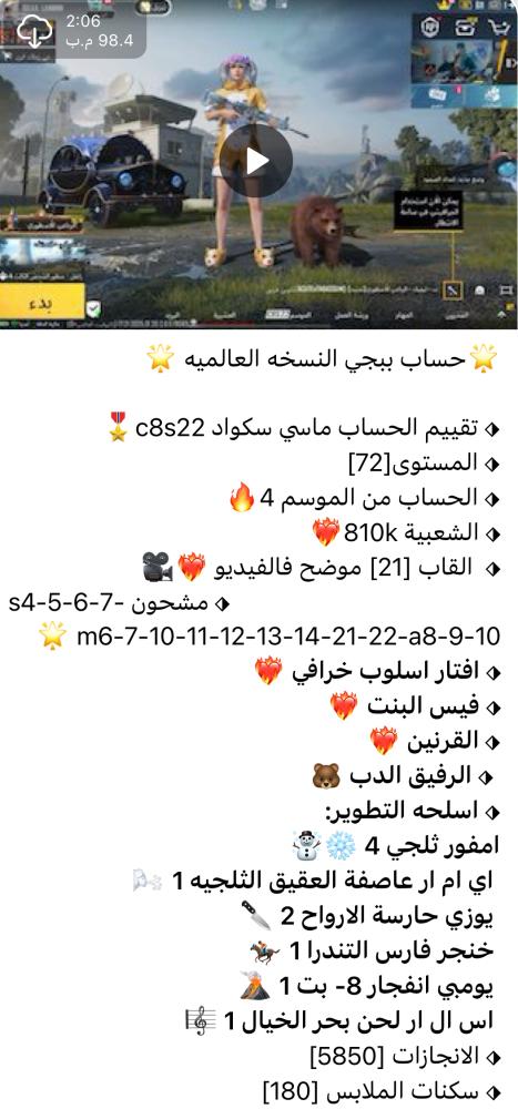 ❤️ اضغط هنا وانضم لقناتنا على تطبيق التلجرام ❤️ لمشاهدة الحسابات بالفيديو وكل ماهو جديد