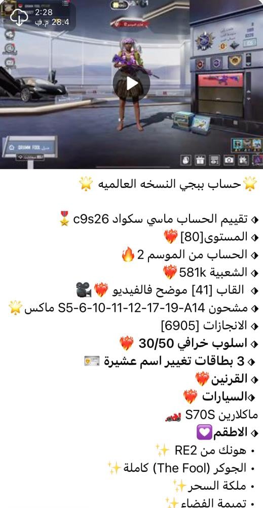 ❤️ اضغط هنا وانضم لقناتنا على تطبيق التلجرام ❤️ لمشاهدة الحسابات بالفيديو وكل ماهو جديد