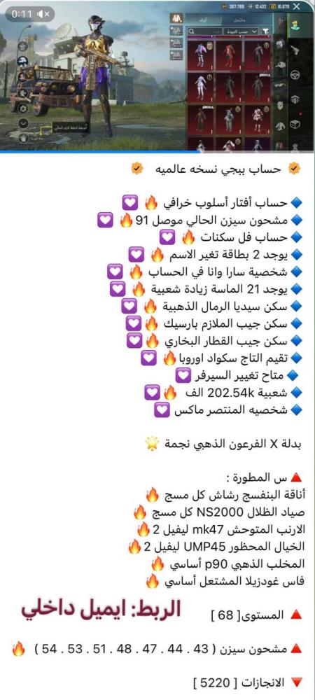 ❤️ اضغط هنا وانضم لقناتنا على تطبيق التلجرام ❤️ لمشاهدة الحسابات بالفيديو وكل ماهو جديد