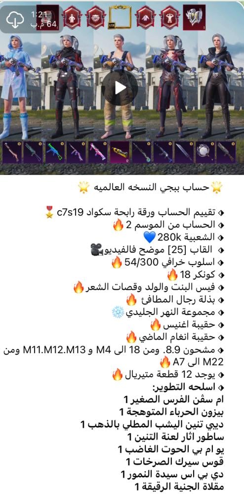 ❤️ اضغط هنا وانضم لقناتنا على تطبيق التلجرام ❤️ لمشاهدة الحسابات بالفيديو وكل ماهو جديد