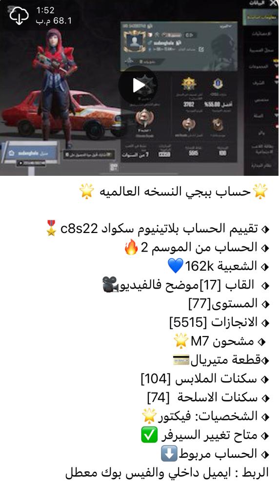 ❤️ اضغط هنا وانضم لقناتنا على تطبيق التلجرام ❤️ لمشاهدة الحسابات بالفيديو وكل ماهو جديد