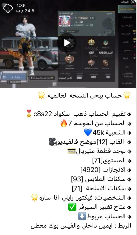 ❤️ اضغط هنا وانضم لقناتنا على تطبيق التلجرام ❤️ لمشاهدة الحسابات بالفيديو وكل ماهو جديد