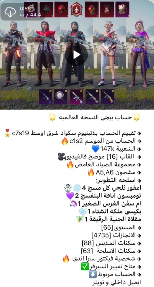 ❤️ اضغط هنا وانضم لقناتنا على تطبيق التلجرام ❤️ لمشاهدة الحسابات بالفيديو وكل ماهو جديد