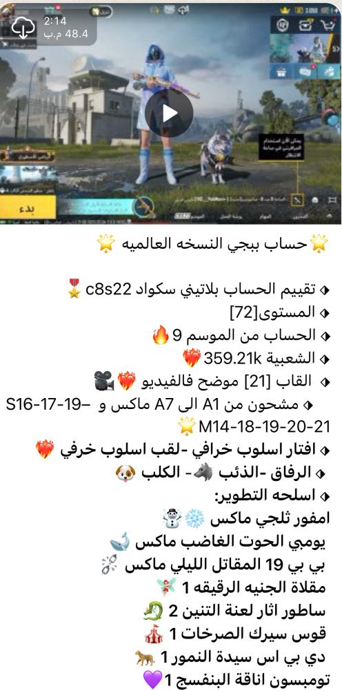 ❤️ اضغط هنا وانضم لقناتنا على تطبيق التلجرام ❤️ لمشاهدة الحسابات بالفيديو وكل ماهو جديد
