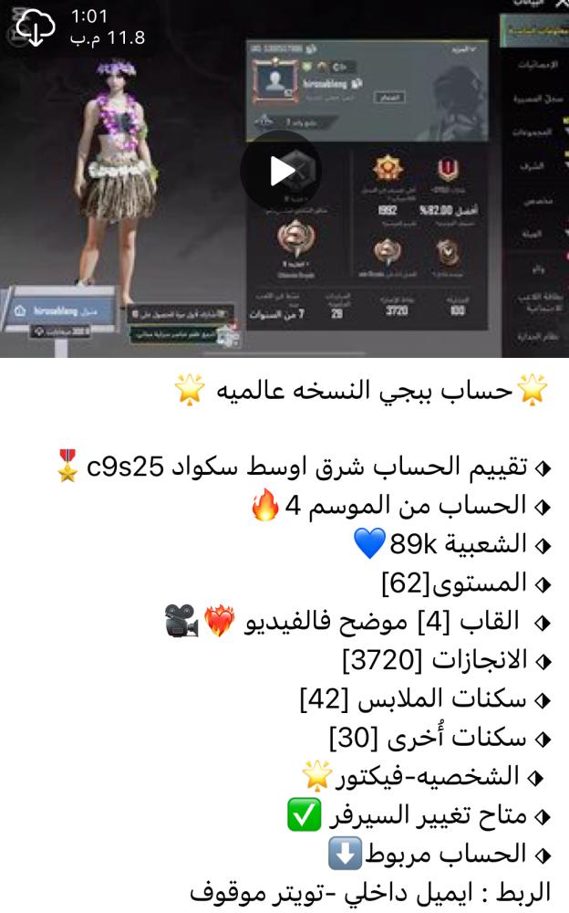 ❤️ اضغط هنا وانضم لقناتنا على تطبيق التلجرام ❤️ لمشاهدة الحسابات بالفيديو وكل ماهو جديد
