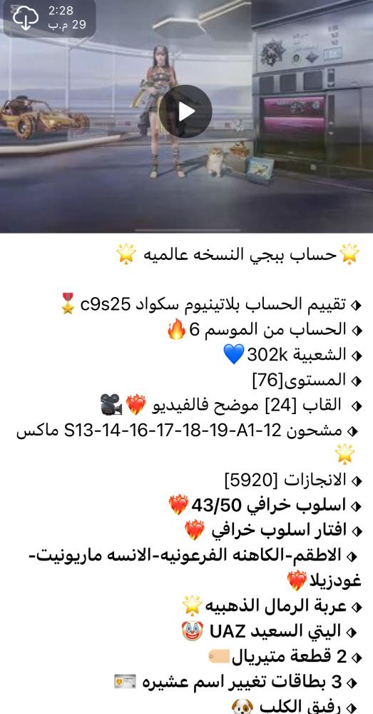 ❤️ اضغط هنا وانضم لقناتنا على تطبيق التلجرام ❤️ لمشاهدة الحسابات بالفيديو وكل ماهو جديد