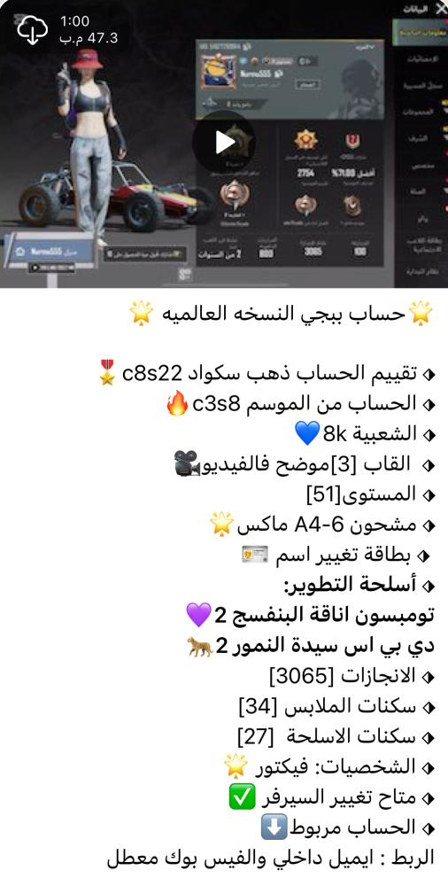 ❤️ اضغط هنا وانضم لقناتنا على تطبيق التلجرام ❤️ لمشاهدة الحسابات بالفيديو وكل ماهو جديد