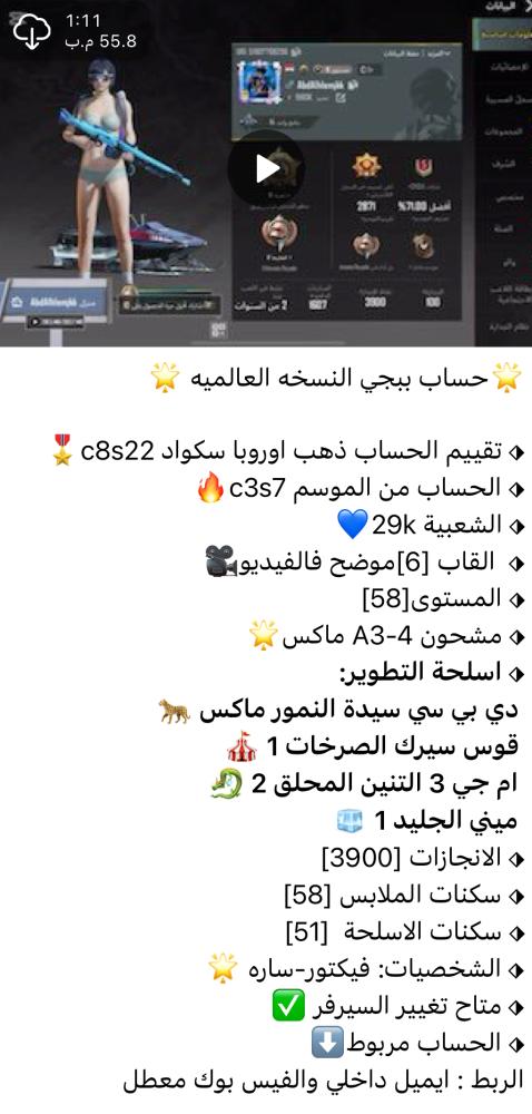 ❤️ اضغط هنا وانضم لقناتنا على تطبيق التلجرام ❤️ لمشاهدة الحسابات بالفيديو وكل ماهو جديد