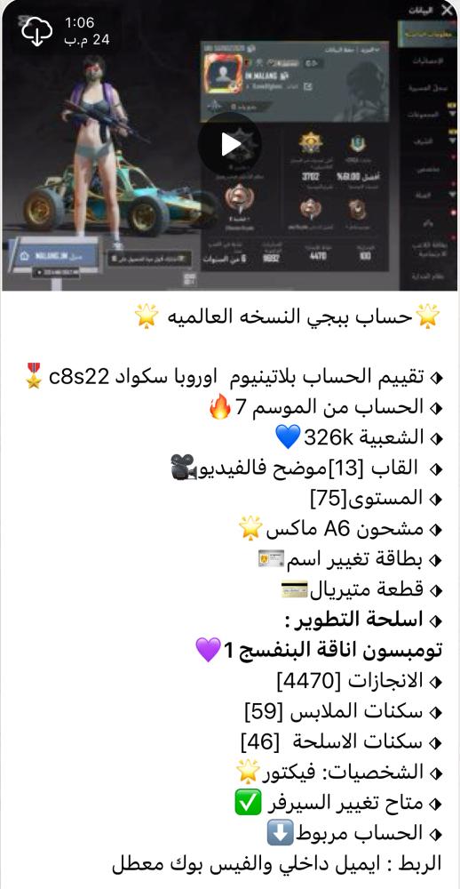 ❤️ اضغط هنا وانضم لقناتنا على تطبيق التلجرام ❤️ لمشاهدة الحسابات بالفيديو وكل ماهو جديد