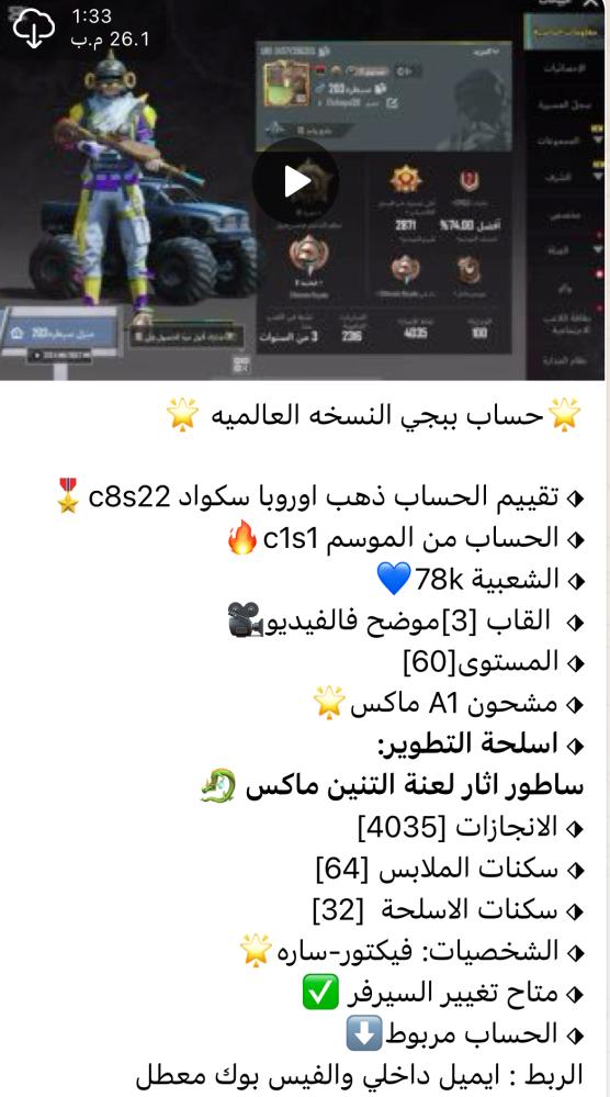 ❤️ اضغط هنا وانضم لقناتنا على تطبيق التلجرام ❤️ لمشاهدة الحسابات بالفيديو وكل ماهو جديد