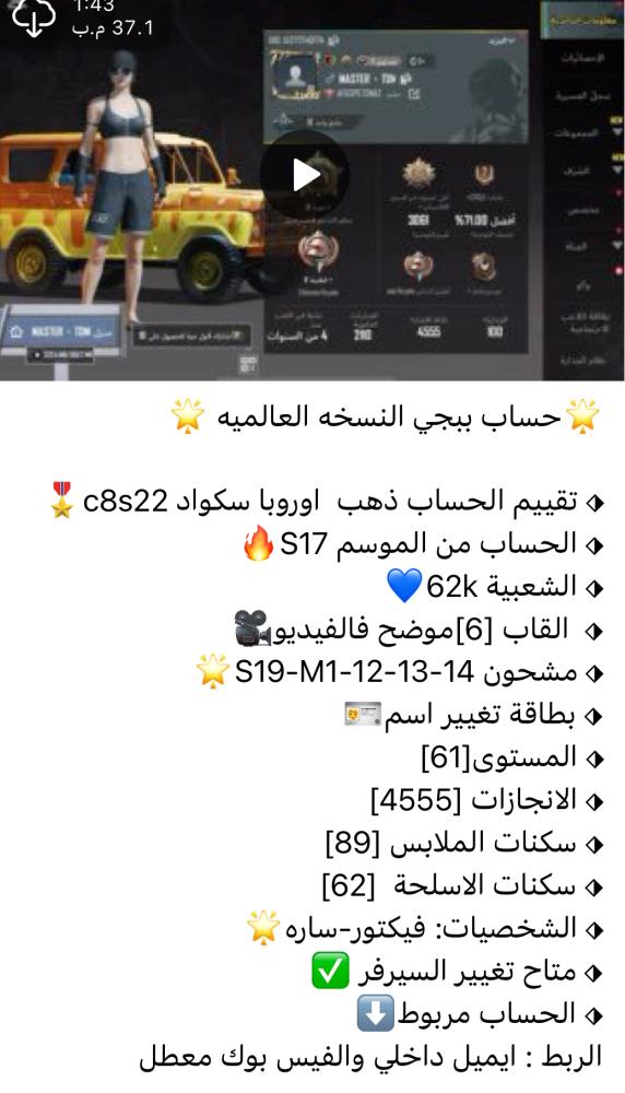 ❤️ اضغط هنا وانضم لقناتنا على تطبيق التلجرام ❤️ لمشاهدة الحسابات بالفيديو وكل ماهو جديد