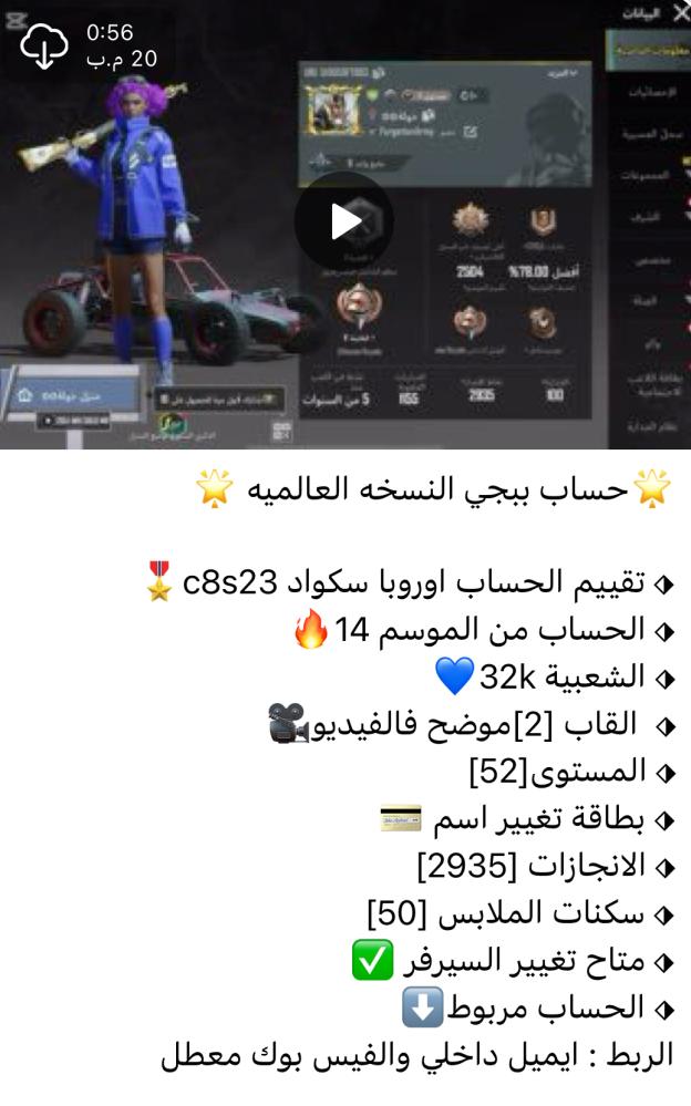 ❤️ اضغط هنا وانضم لقناتنا على تطبيق التلجرام ❤️ لمشاهدة الحسابات بالفيديو وكل ماهو جديد