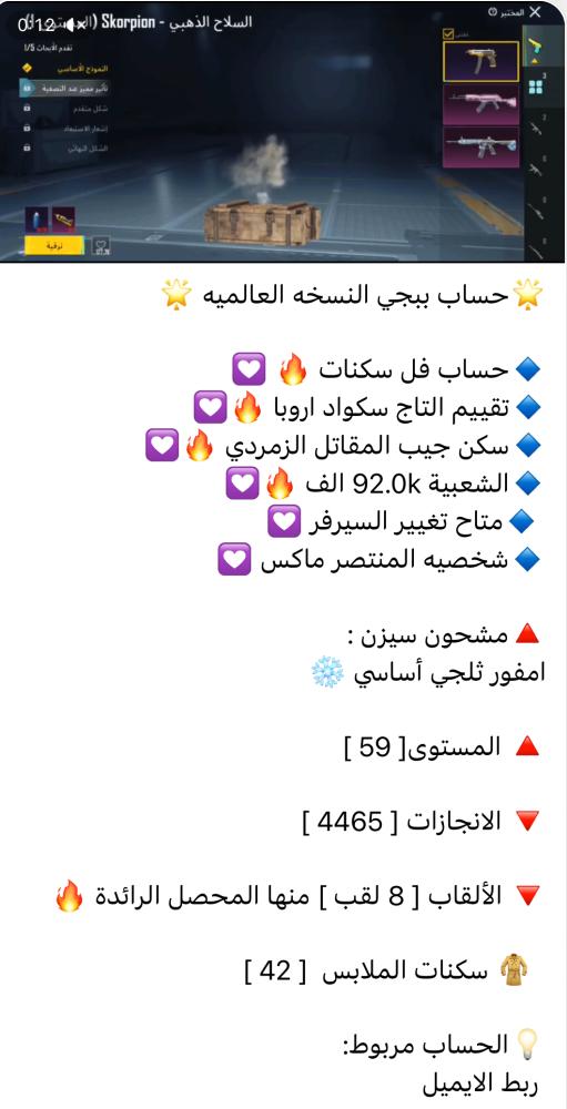 ❤️ اضغط هنا وانضم لقناتنا على تطبيق التلجرام ❤️ لمشاهدة الحسابات بالفيديو وكل ماهو جديد