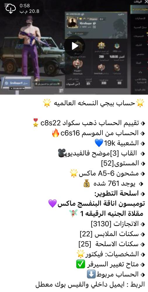❤️ اضغط هنا وانضم لقناتنا على تطبيق التلجرام ❤️ لمشاهدة الحسابات بالفيديو وكل ماهو جديد