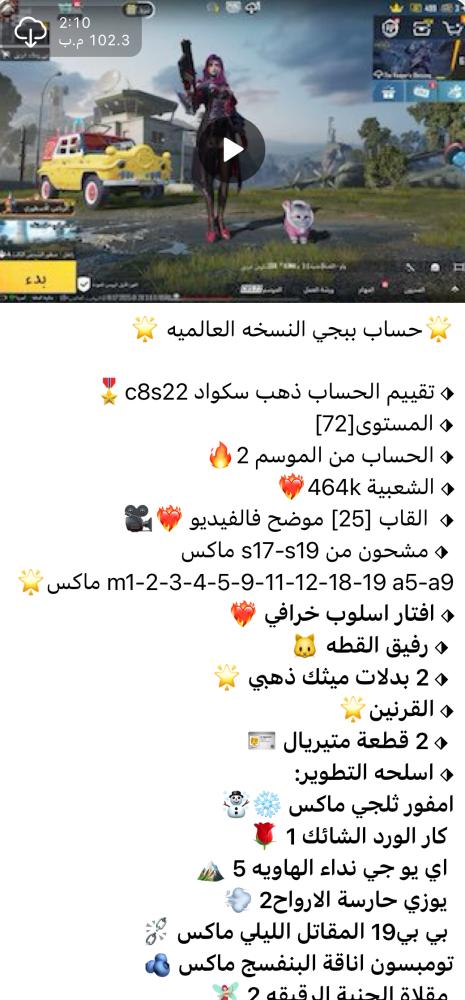 ❤️ اضغط هنا وانضم لقناتنا على تطبيق التلجرام ❤️ لمشاهدة الحسابات بالفيديو وكل ماهو جديد