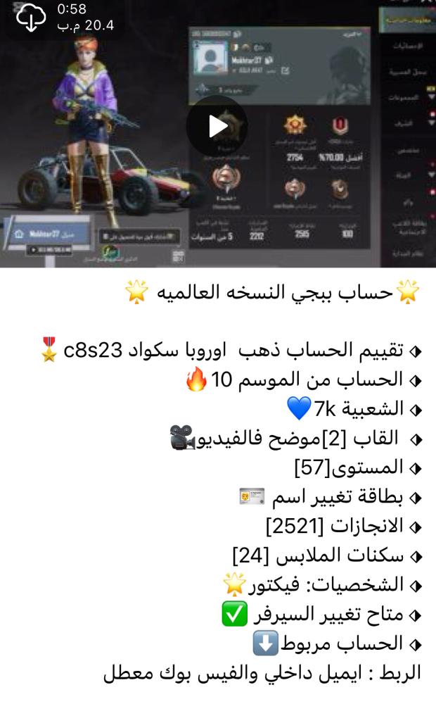 ❤️ اضغط هنا وانضم لقناتنا على تطبيق التلجرام ❤️ لمشاهدة الحسابات بالفيديو وكل ماهو جديد