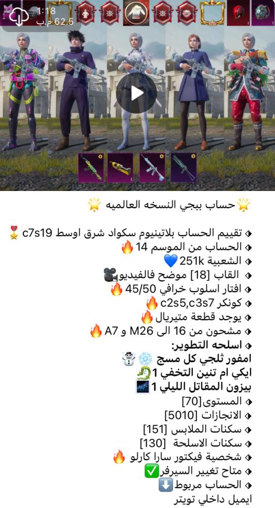 ❤️ اضغط هنا وانضم لقناتنا على تطبيق التلجرام ❤️ لمشاهدة الحسابات بالفيديو وكل ماهو جديد