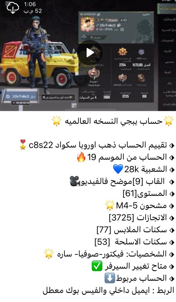 ❤️ اضغط هنا وانضم لقناتنا على تطبيق التلجرام ❤️ لمشاهدة الحسابات بالفيديو وكل ماهو جديد