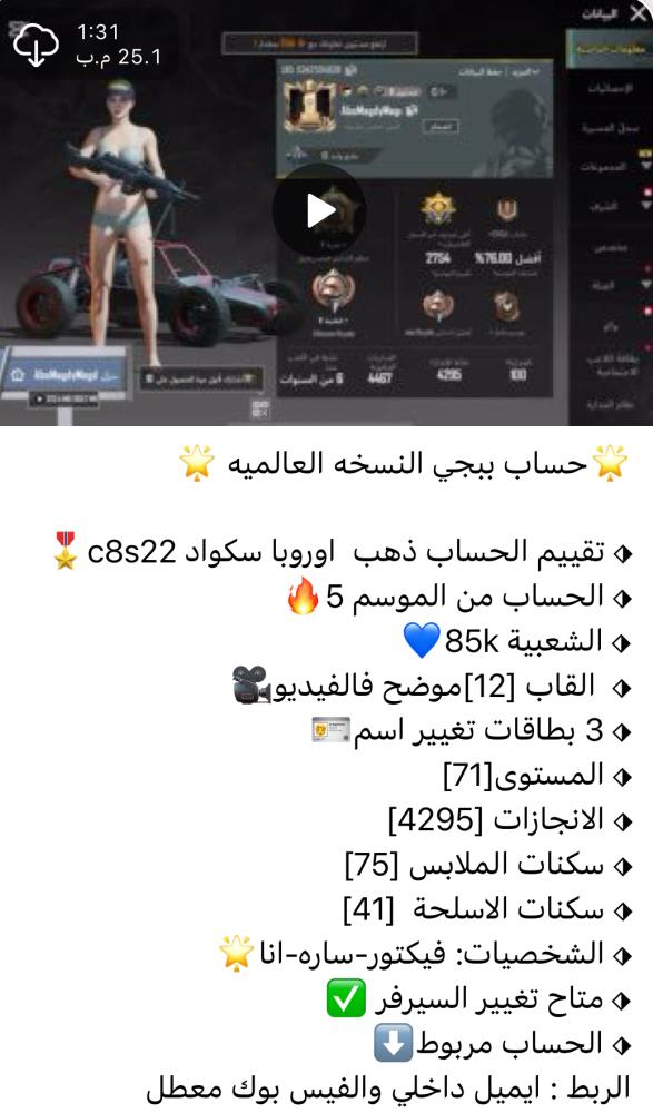 ❤️ اضغط هنا وانضم لقناتنا على تطبيق التلجرام ❤️ لمشاهدة الحسابات بالفيديو وكل ماهو جديد