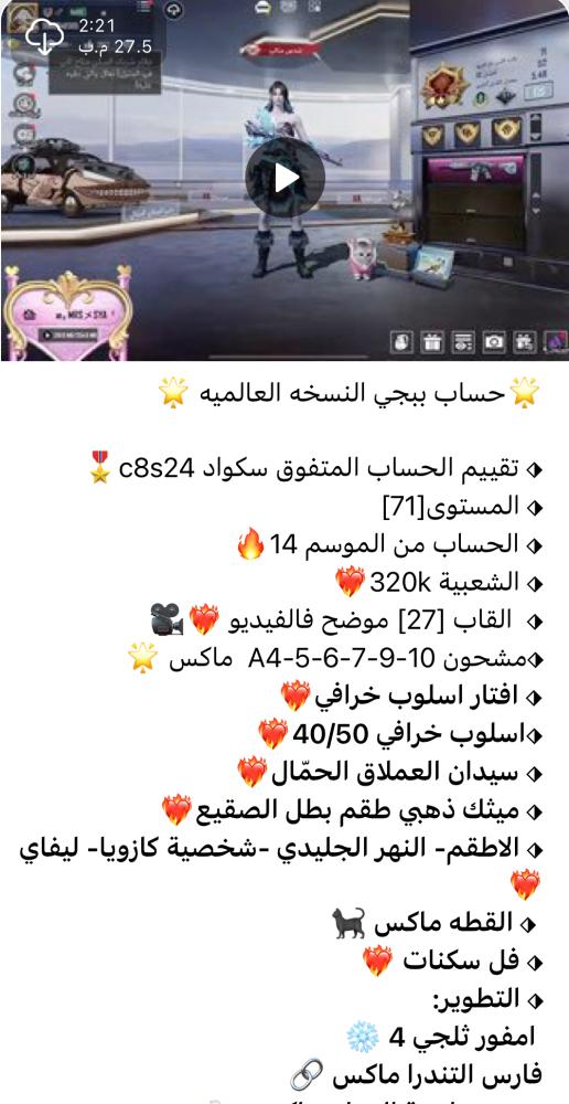 ❤️ اضغط هنا وانضم لقناتنا على تطبيق التلجرام ❤️ لمشاهدة الحسابات بالفيديو وكل ماهو جديد