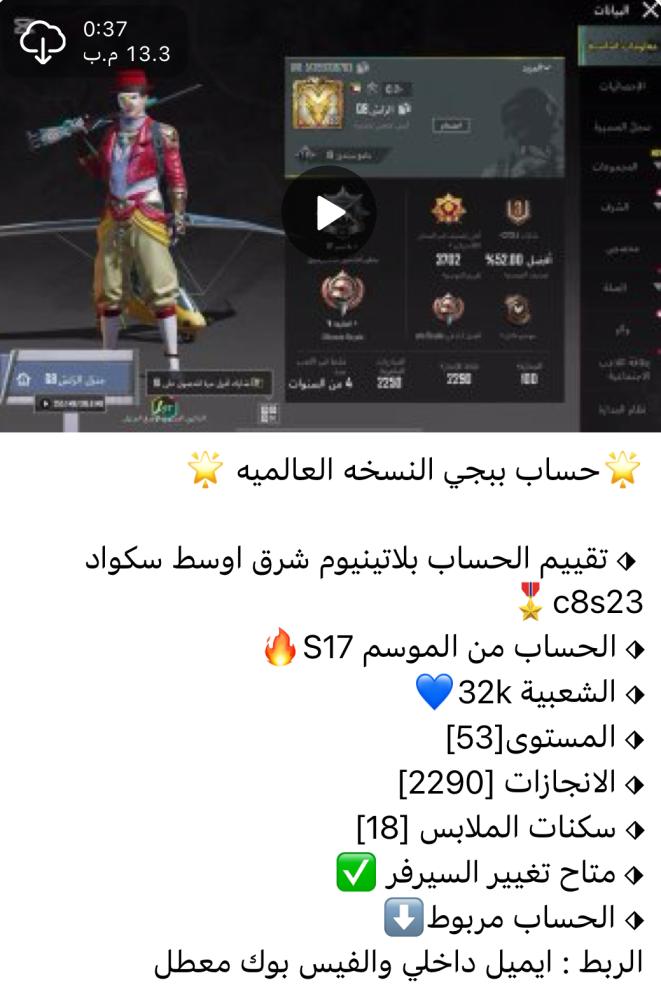 ❤️ اضغط هنا وانضم لقناتنا على تطبيق التلجرام ❤️ لمشاهدة الحسابات بالفيديو وكل ماهو جديد