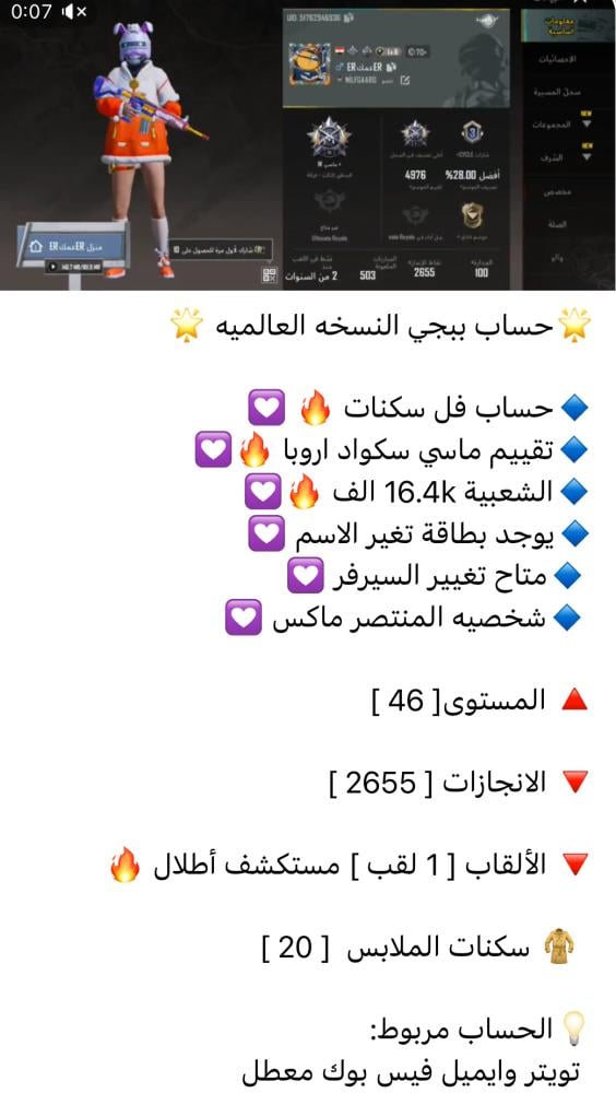 ❤️ اضغط هنا وانضم لقناتنا على تطبيق التلجرام ❤️ لمشاهدة الحسابات بالفيديو وكل ماهو جديد