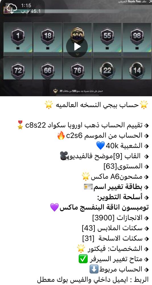 ❤️ اضغط هنا وانضم لقناتنا على تطبيق التلجرام ❤️ لمشاهدة الحسابات بالفيديو وكل ماهو جديد
