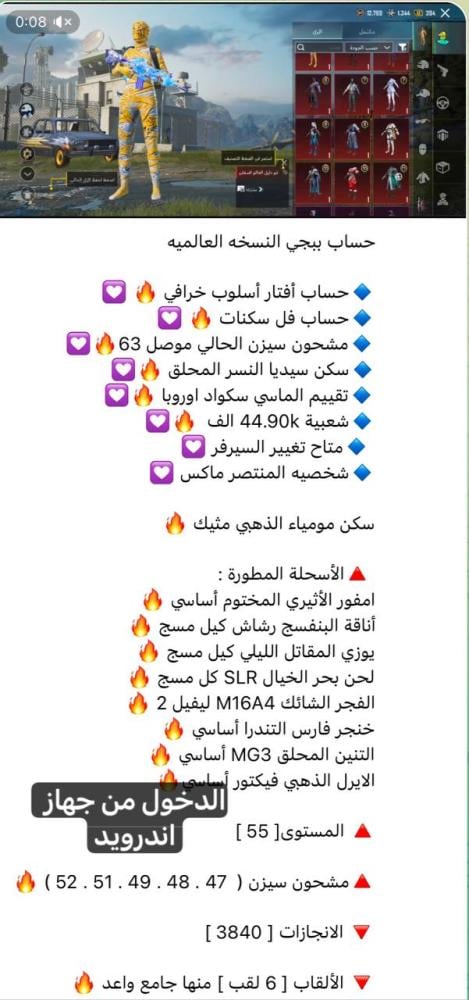 ❤️ اضغط هنا وانضم لقناتنا على تطبيق التلجرام ❤️ لمشاهدة الحسابات بالفيديو وكل ماهو جديد