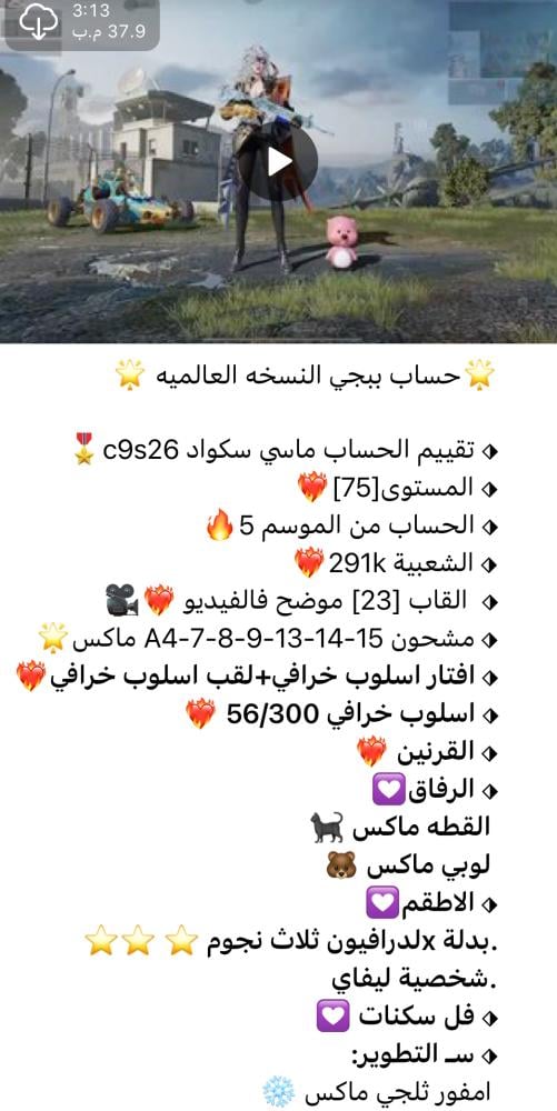 ❤️ اضغط هنا وانضم لقناتنا على تطبيق التلجرام ❤️ لمشاهدة الحسابات بالفيديو وكل ماهو جديد