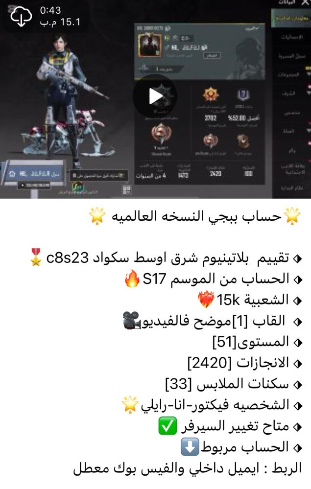 ❤️ اضغط هنا وانضم لقناتنا على تطبيق التلجرام ❤️ لمشاهدة الحسابات بالفيديو وكل ماهو جديد