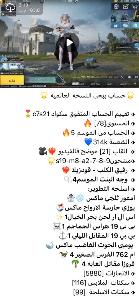 ❤️ اضغط هنا وانضم لقناتنا على تطبيق التلجرام ❤️ لمشاهدة الحسابات بالفيديو وكل ماهو جديد