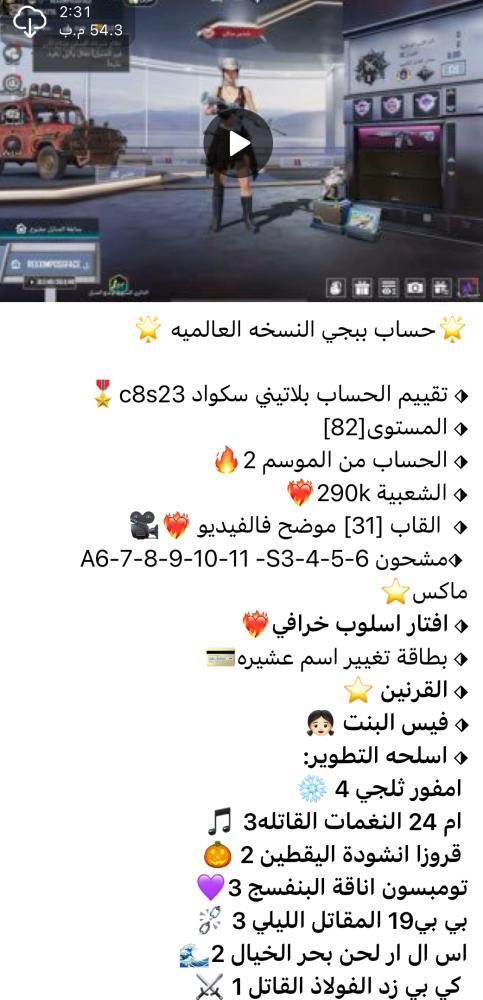 ❤️ اضغط هنا وانضم لقناتنا على تطبيق التلجرام ❤️ لمشاهدة الحسابات بالفيديو وكل ماهو جديد