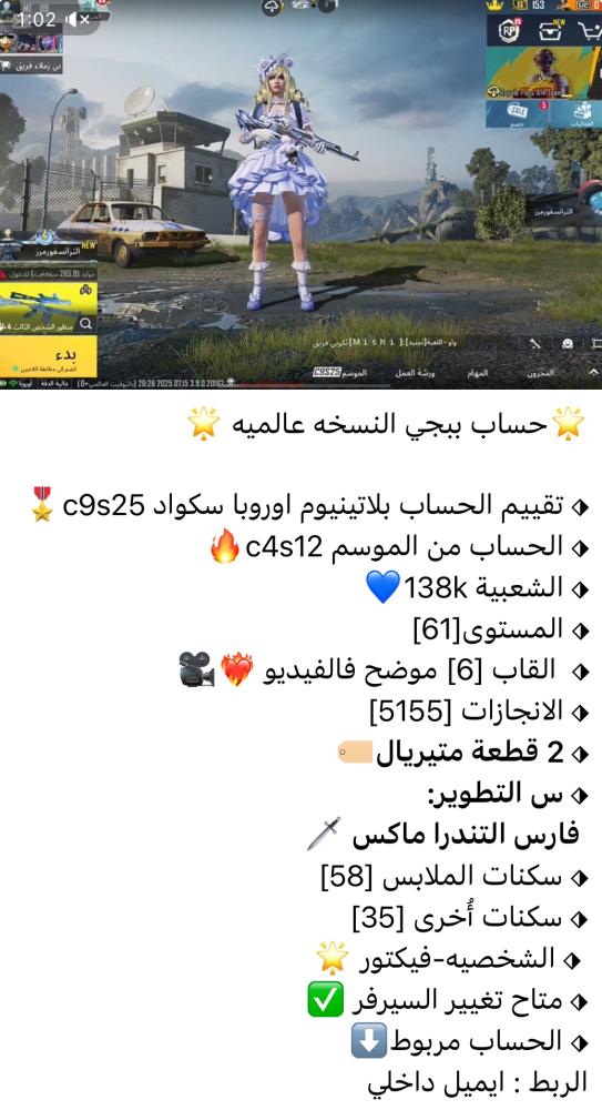 ❤️ اضغط هنا وانضم لقناتنا على تطبيق التلجرام ❤️ لمشاهدة الحسابات بالفيديو وكل ماهو جديد