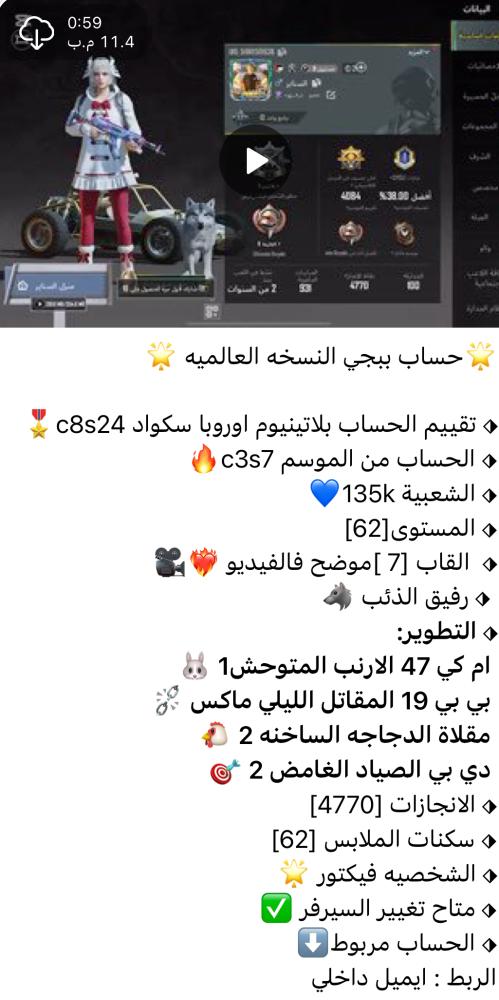 ❤️ اضغط هنا وانضم لقناتنا على تطبيق التلجرام ❤️ لمشاهدة الحسابات بالفيديو وكل ماهو جديد