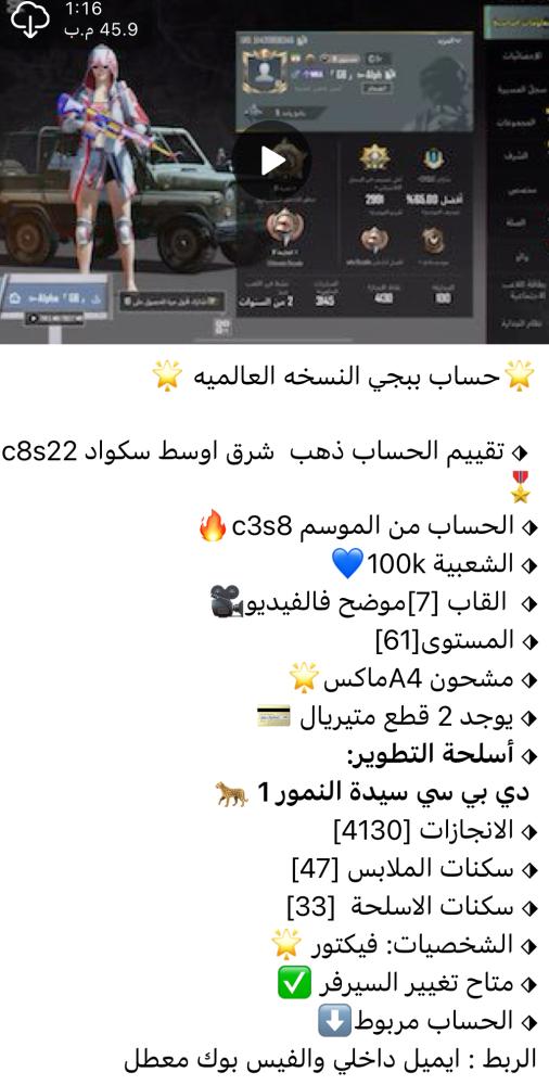 ❤️ اضغط هنا وانضم لقناتنا على تطبيق التلجرام ❤️ لمشاهدة الحسابات بالفيديو وكل ماهو جديد